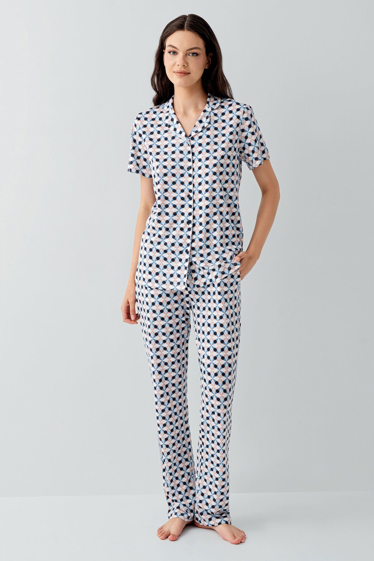 Arnetta Kadın Mavi Gömlek Pijama Takım