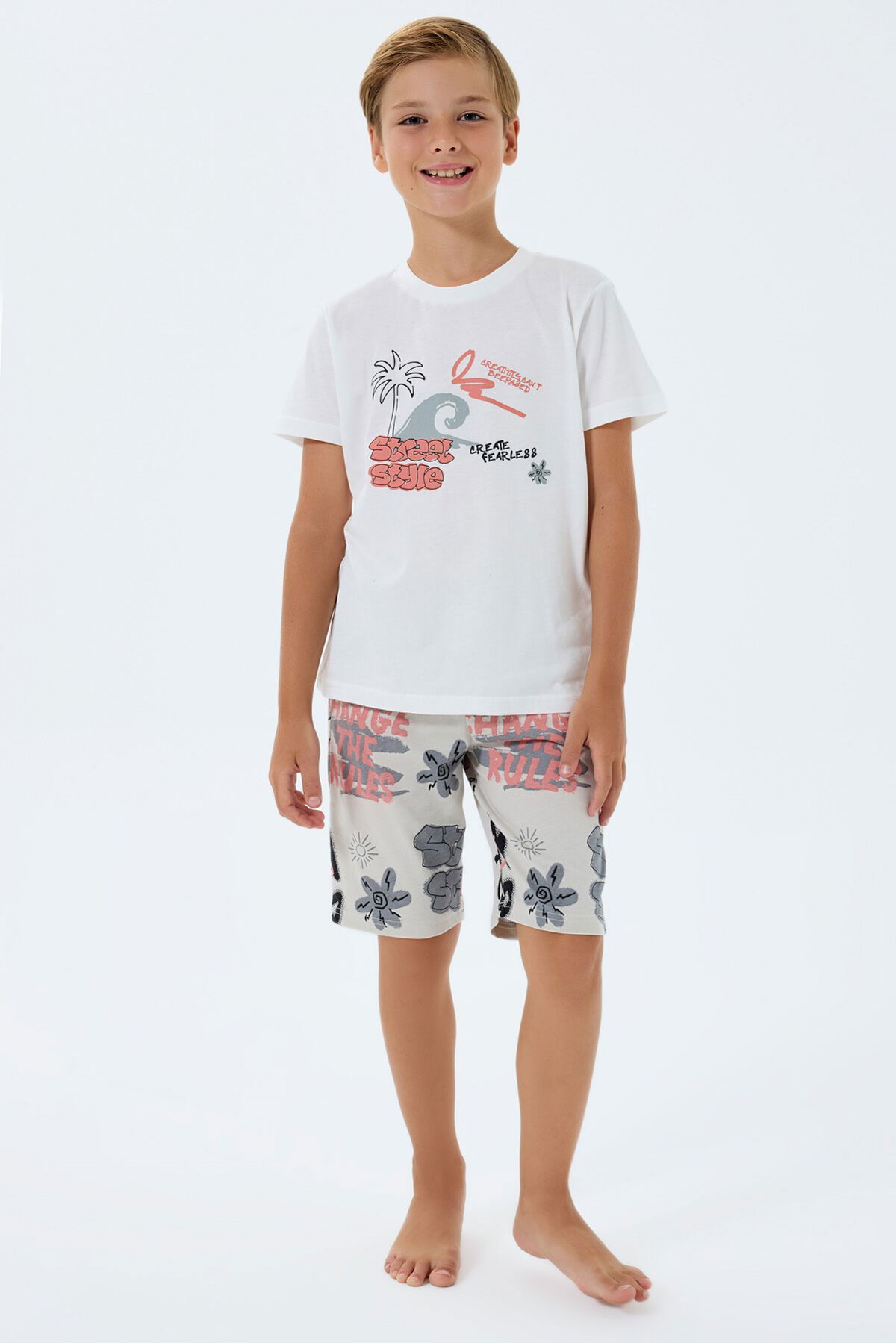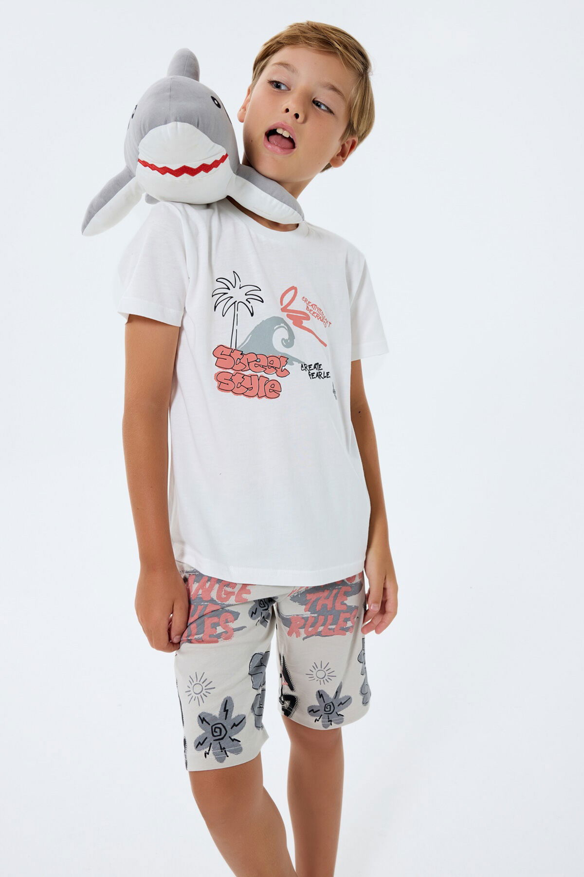 Rolypoly Erkek Çocuk Beyaz Bermuda Takım