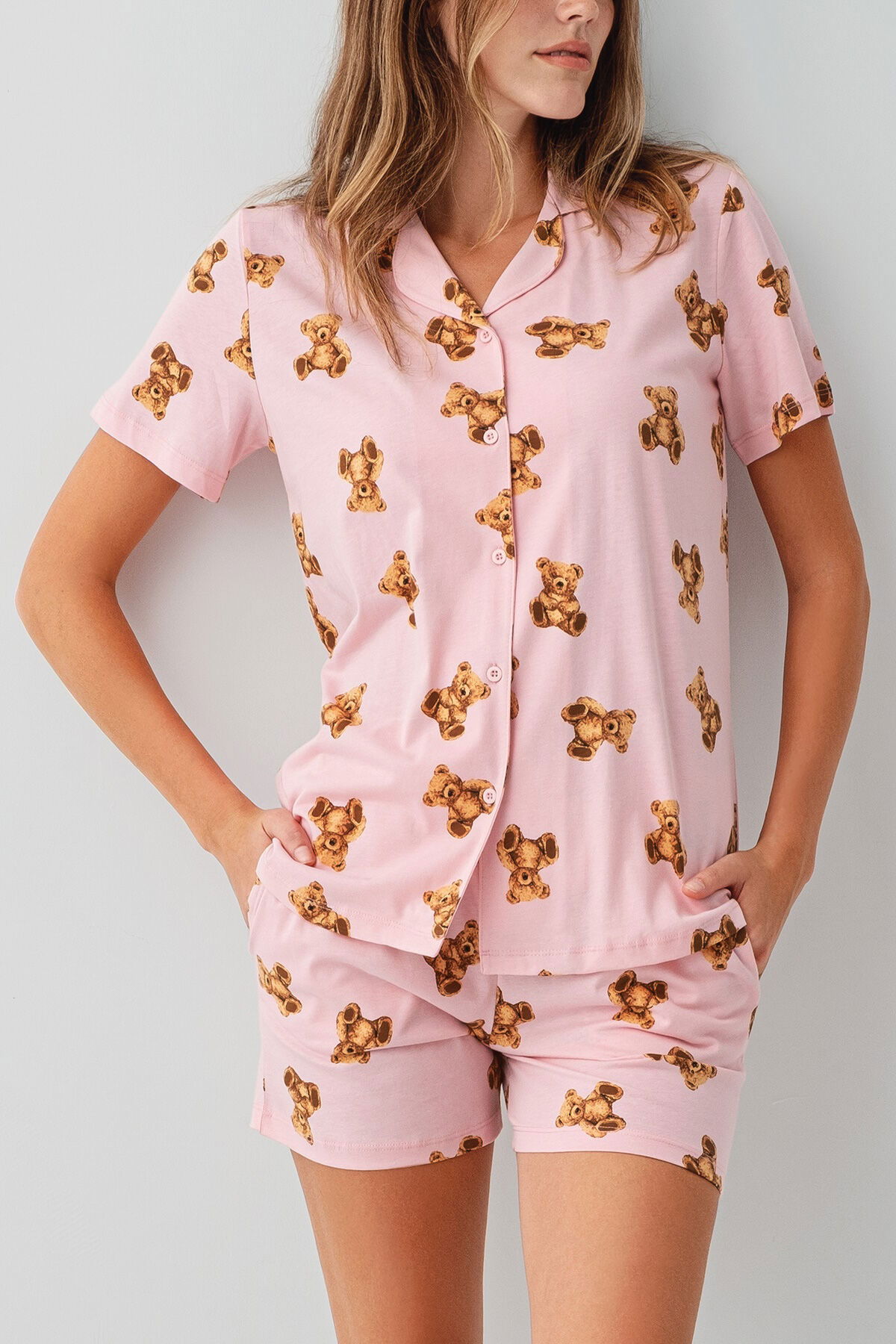 Rolypoly Kadın Pembe Gömlek Şort Takım