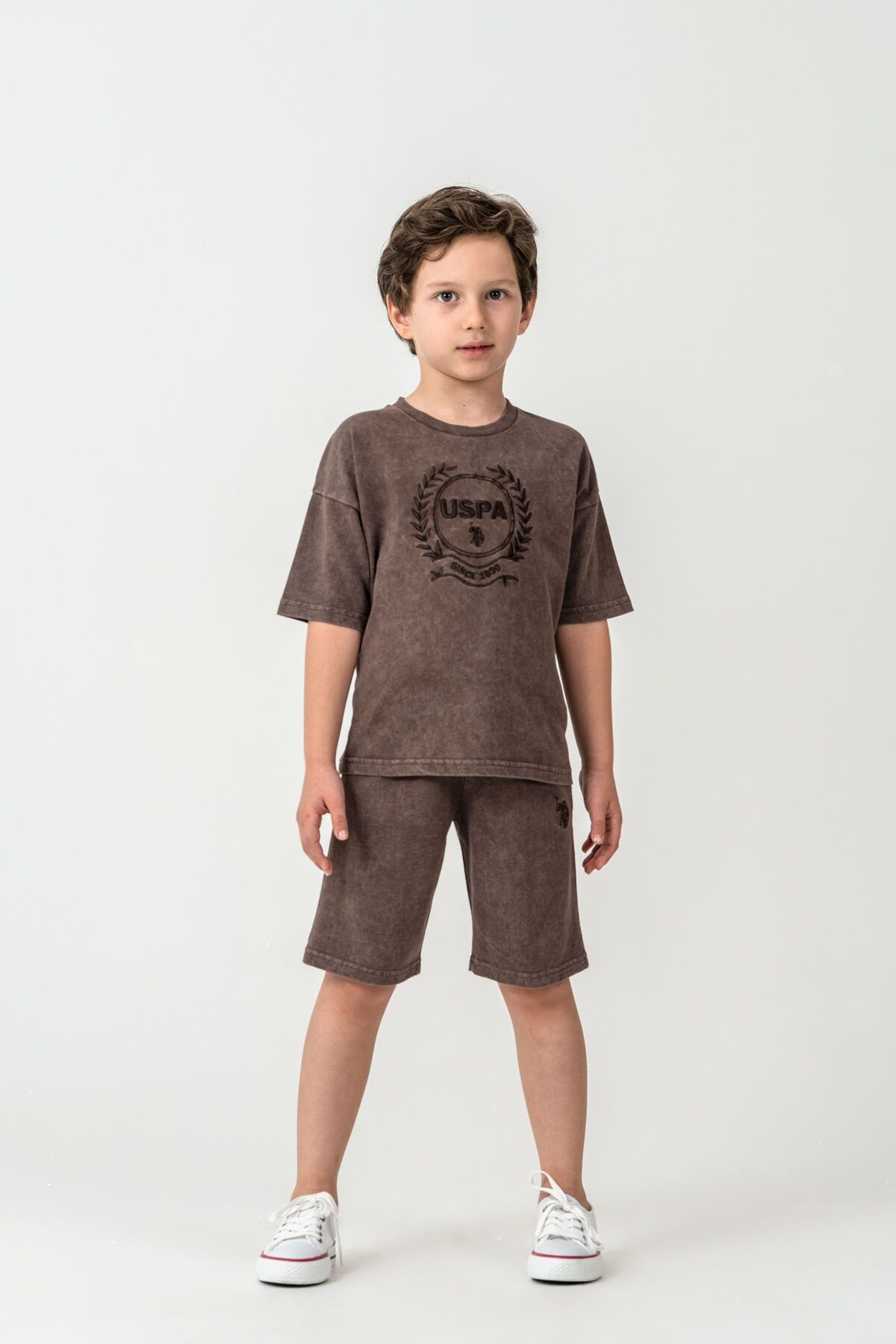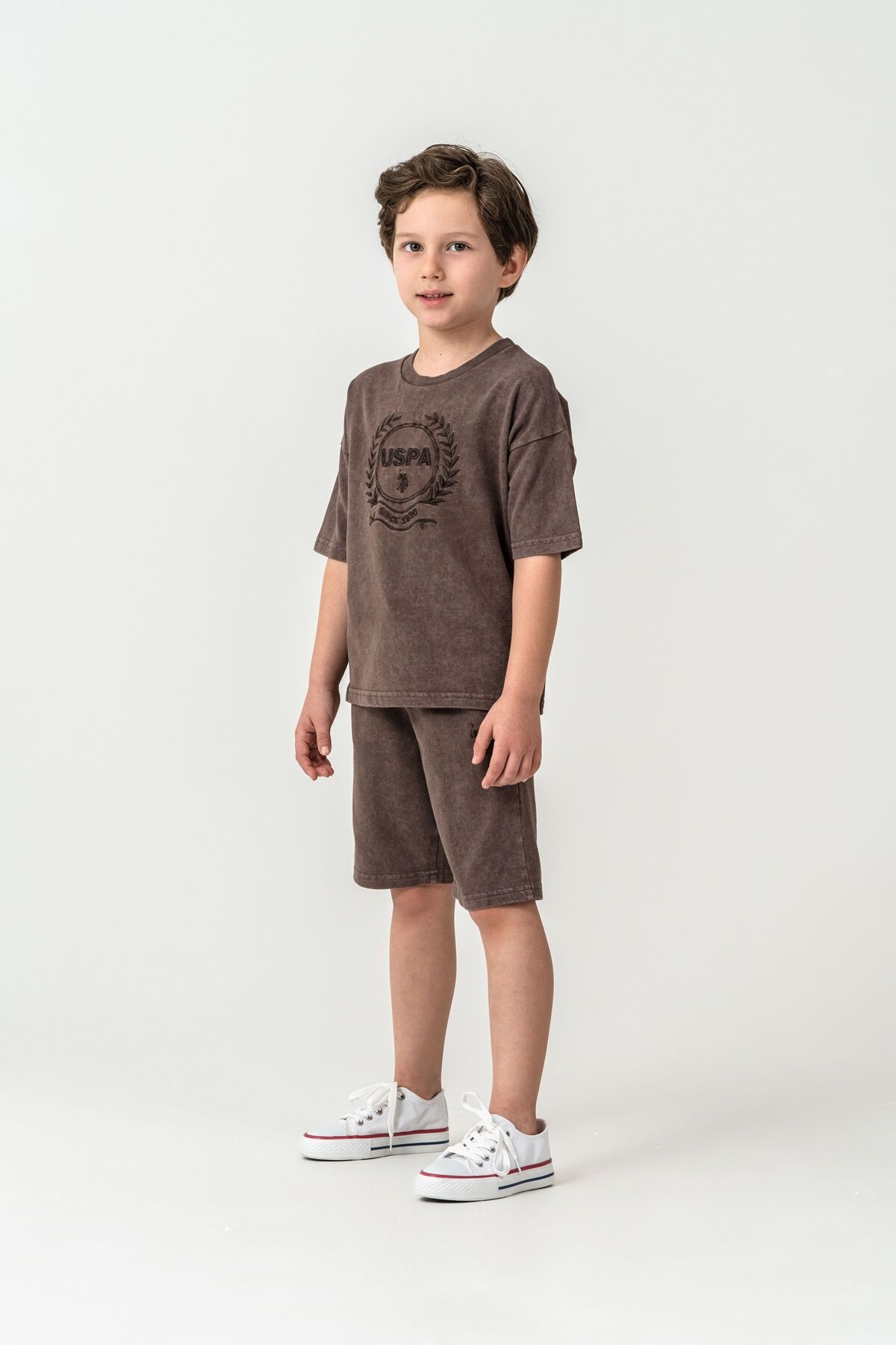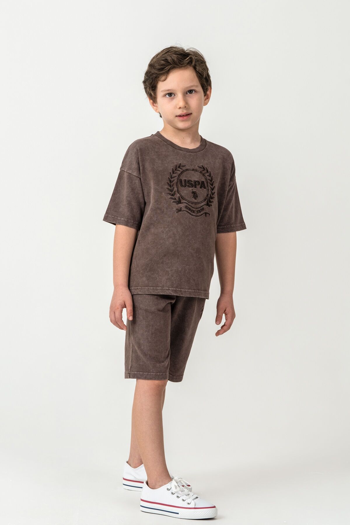 U.S. Polo Assn. Erkek Çocuk Kahverengi Bermuda Takım